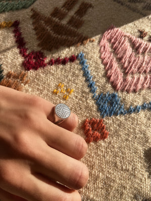 La technique de la granulation utilisée pour fabriquer ce bijou dérive de la technique du Pibiones, traditionnel tissage "à grains" longtemps utilisé pour créer les tapisseries en relief typiques de la Sardaigne. Elle emprunte au lexique de la mercerie les gestes de couturière et les adapte à la joaillerie.